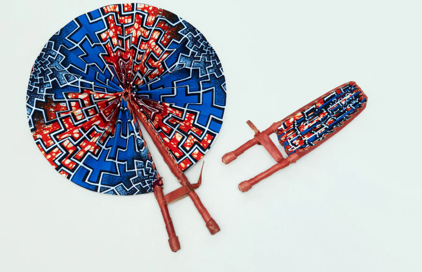 Beautiful hand-held fan made from colorful Ankara or African fabric crafted with genuine leather handles. Small and compact enough to fit into a purse when folded. When folded, size is approximately 12”x 2.5 and diameter when open is approximately 12”x 15”. Grab one to cool yourself down, or mix and match a few to create a beautiful accent wall. Perfect for gifting or party favors.